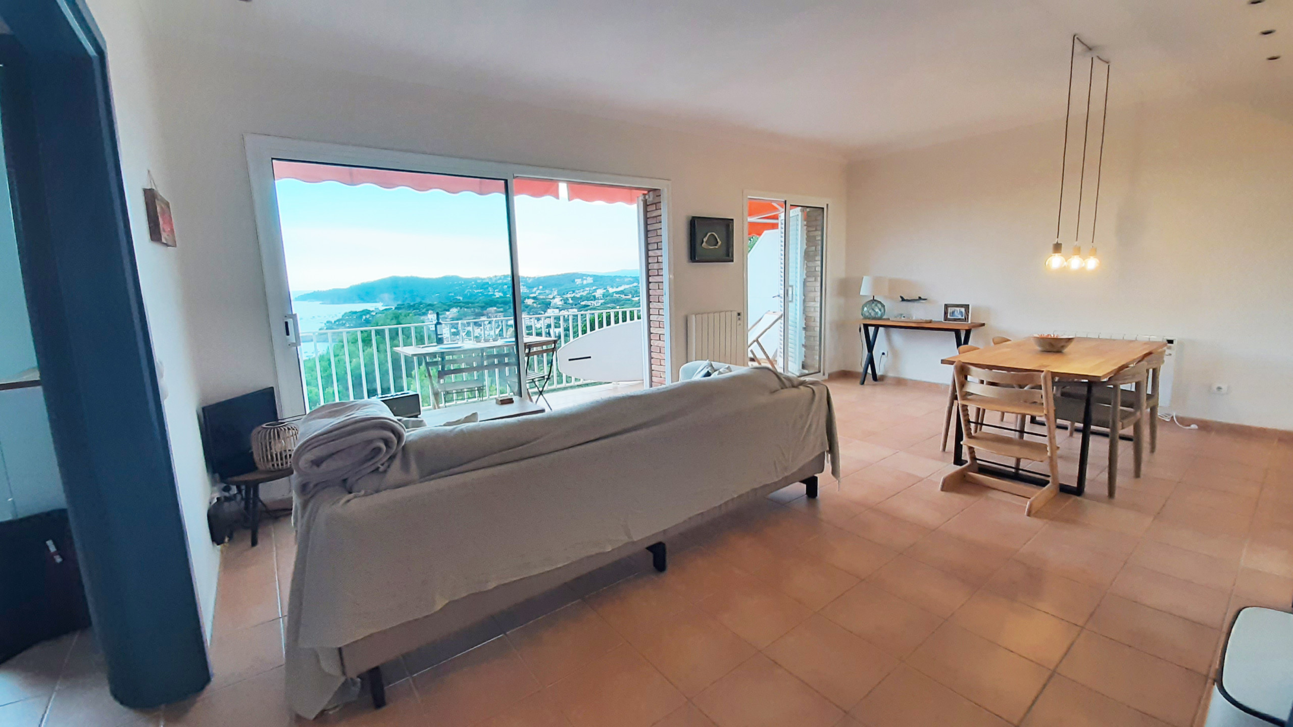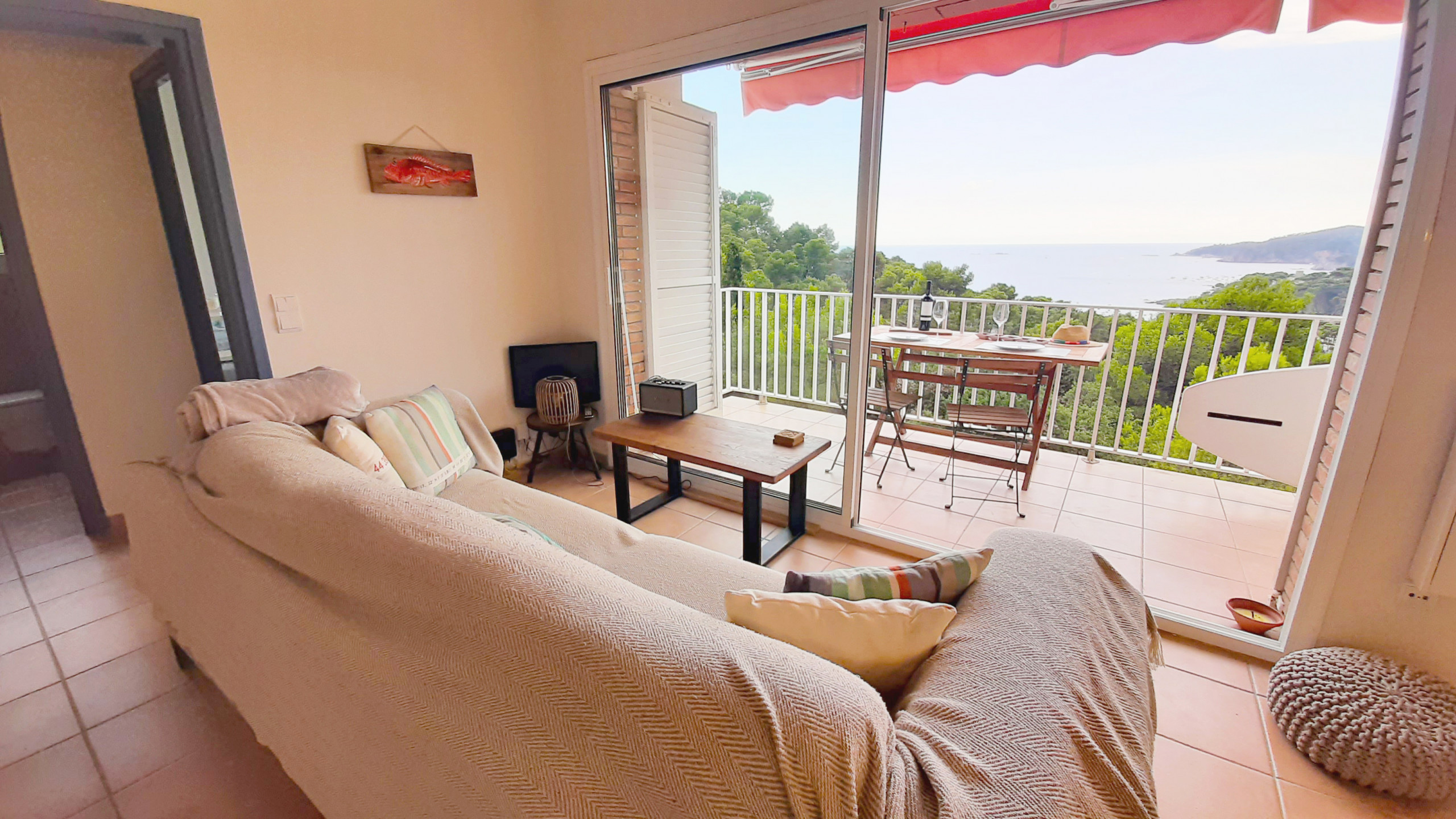 Nous avons passé un très bon séjour avec notre fils de 30 mois. L’appartement est fonctionnel, propre, conforme aux photos. Il est très bien situé sur les hauteurs de Llafranc (+/-10 min de la plage). La vue est superbe. Le balcon est top. Les cigales accompagnent le séjour. L’appartement est géré par une agence immobilière (remise des clefs et d’un pack draps+serviettes). Elle a su être extrêmement réactive et serviable. Ce qu’on ne savait pas à travers les photos : Il s’agit d’un 1er étage surélevé qui équivaut à un bon 2ème étage. À disposition : 2 chaises longues + commodes vides dans chaque chambre. La literie (à mémoire de forme) semble neuve. La fenêtre de la petite chambre enfant est sécurisée et s’ouvre peu. C’est rassurant mais ne permet pas la circulation de l’air. L’appartement est bien ventilé en laissant la porte d’entrée ouverte mais nous avons eu très chaud la nuit (début août). Cela n’aurait pas été tenable sans ventilateur, prêtés par l’agence.
