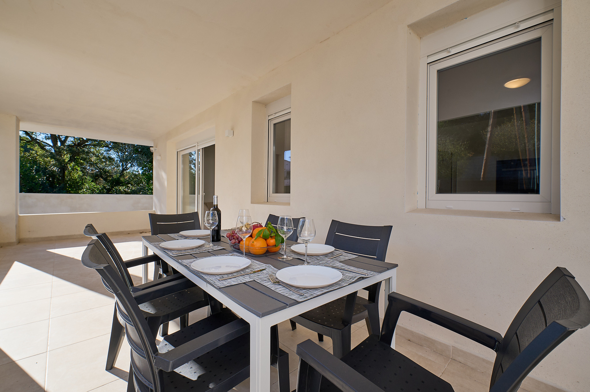 Cuenta con una zona exterior con piscina privada (8,5 x 4,5m) y una gran terraza cubierta donde podrá disfrutar de agradables desayunos y comidas junto a la piscina con unas bonitas vistas a la montaña, barbacoa y plaza de parking para 2 coches. Supervisado por un guardia del anexo del apartamento.