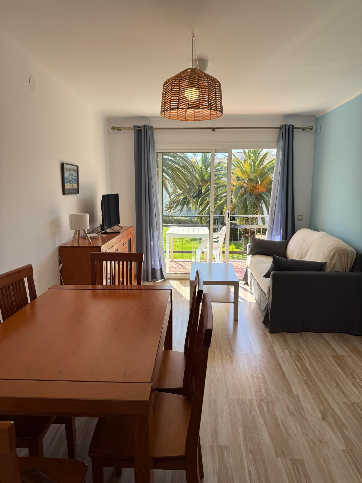 Saló-menjador, TV i sortida directa al balcó (dona a la part del darrere de la comunitat. No dona a la piscina).