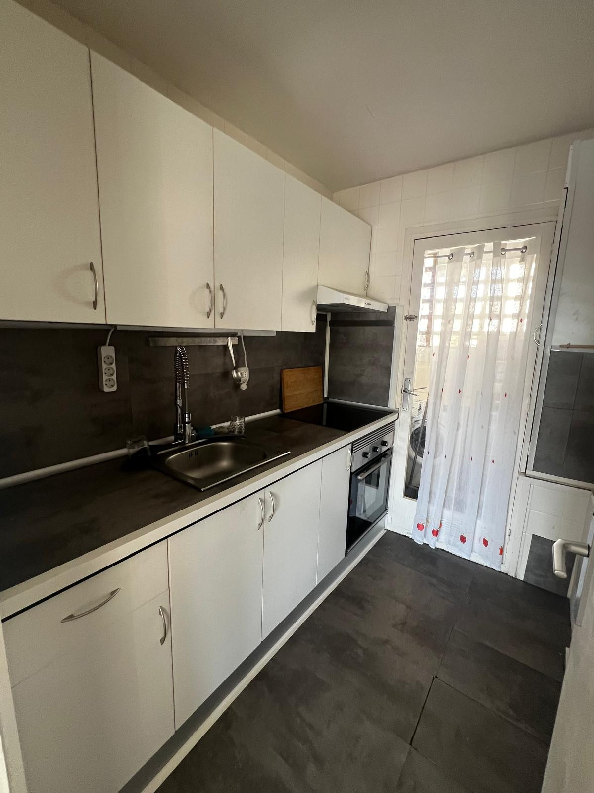 Cuina amb tots els estris inclosos: coberts, paelles, nevera, rentaplats i microones-Grill.