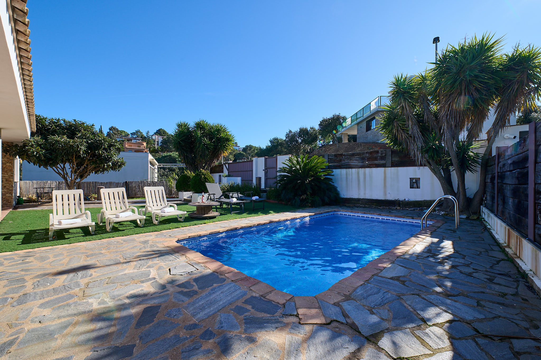 Casa d’una sola planta amb piscina privada (6 x 3 m), situada en un tranquil barri residencial de L'Esclanyà – Begur. Una ubicació ideal, a només uns minuts de les platges més boniques de la Costa Brava: la Fonda (4 km), Aiguablava (5 km) i Calella – Llafranc (8–9 km).