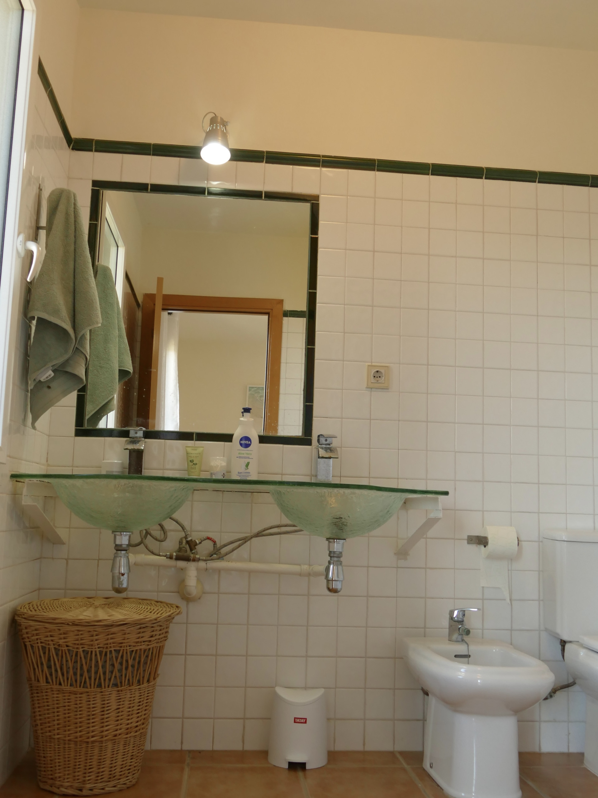 - 1 suite amb un llit de matrimoni (150×190 cm), bany amb banyera i balcó.