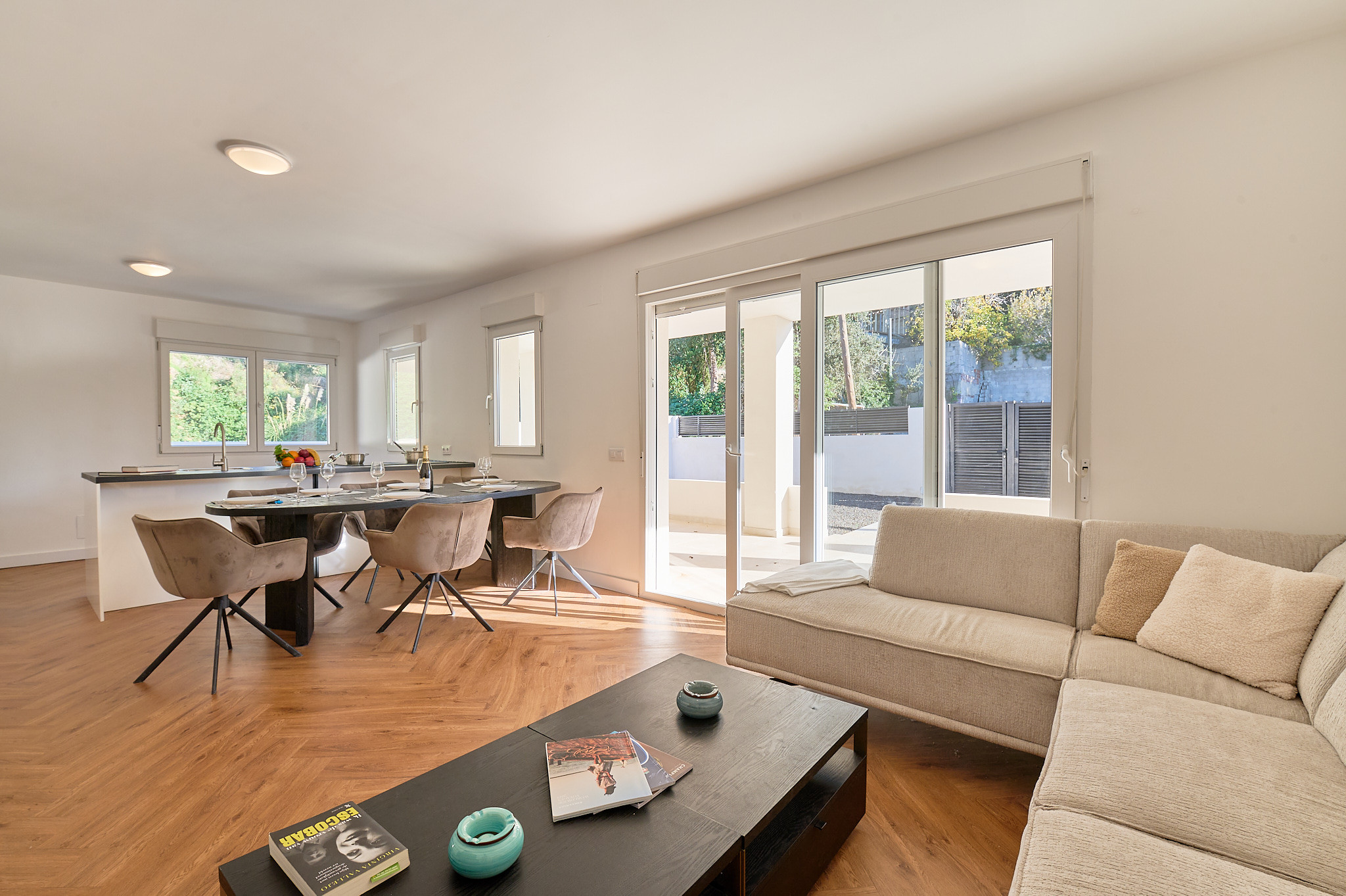 Compta amb una zona exterior amb piscina privada (8,5 x 4,5m) i una gran terrassa coberta on podrà gaudir d'agradables esmorzars i menjars al costat de la piscina amb unes boniques vistes a la muntanya, barbacoa i plaça de pàrquing per a 2 cotxes. Supervisat per un guàrdia de l'annex de l'apartament.