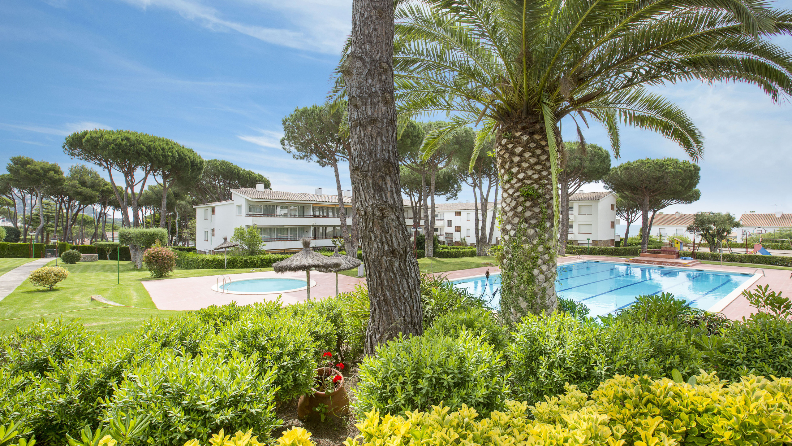 It is part of a beautiful outdoor community area with a large swimming pool and spacious garden area. Ideal for families with children.