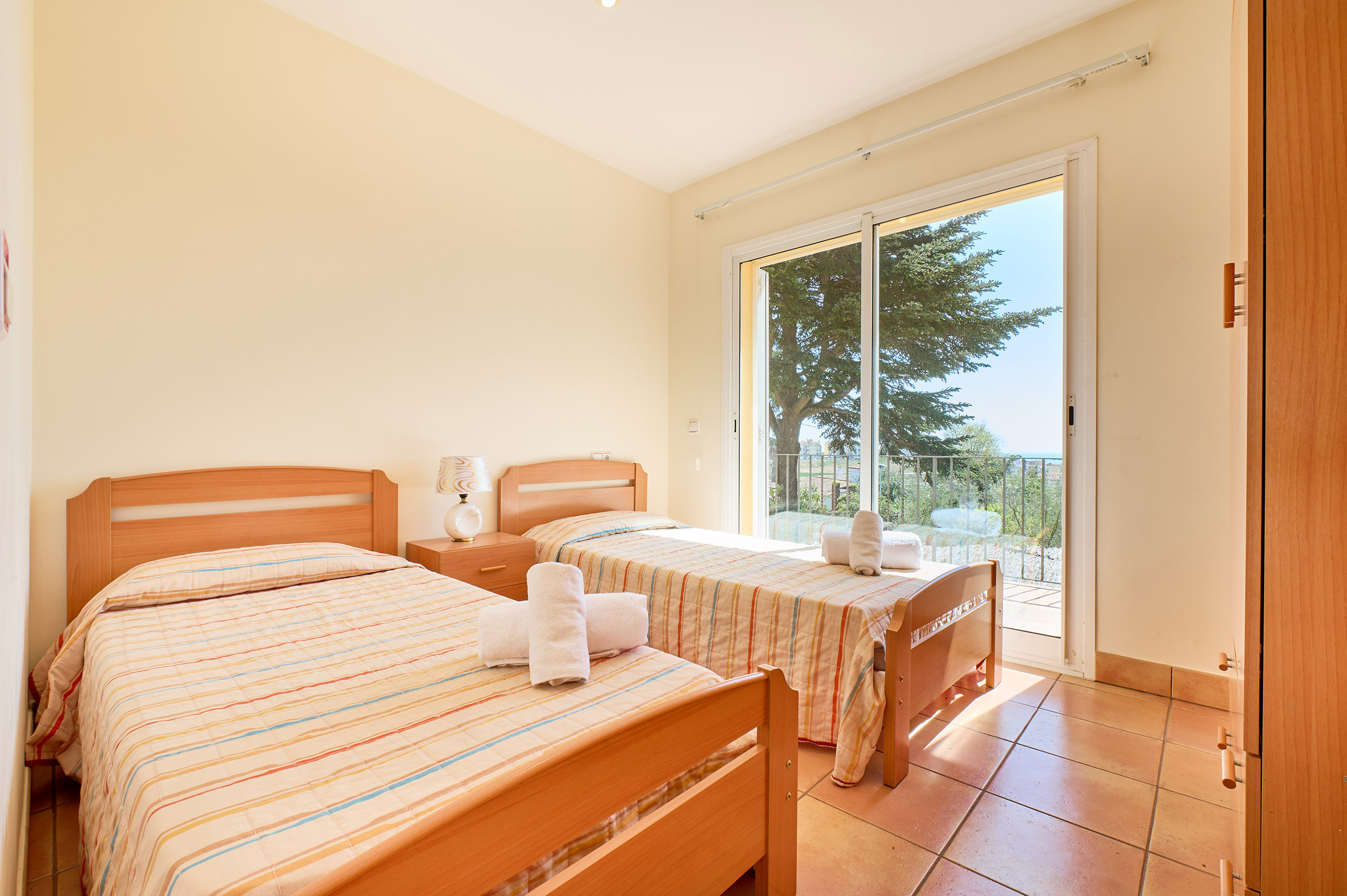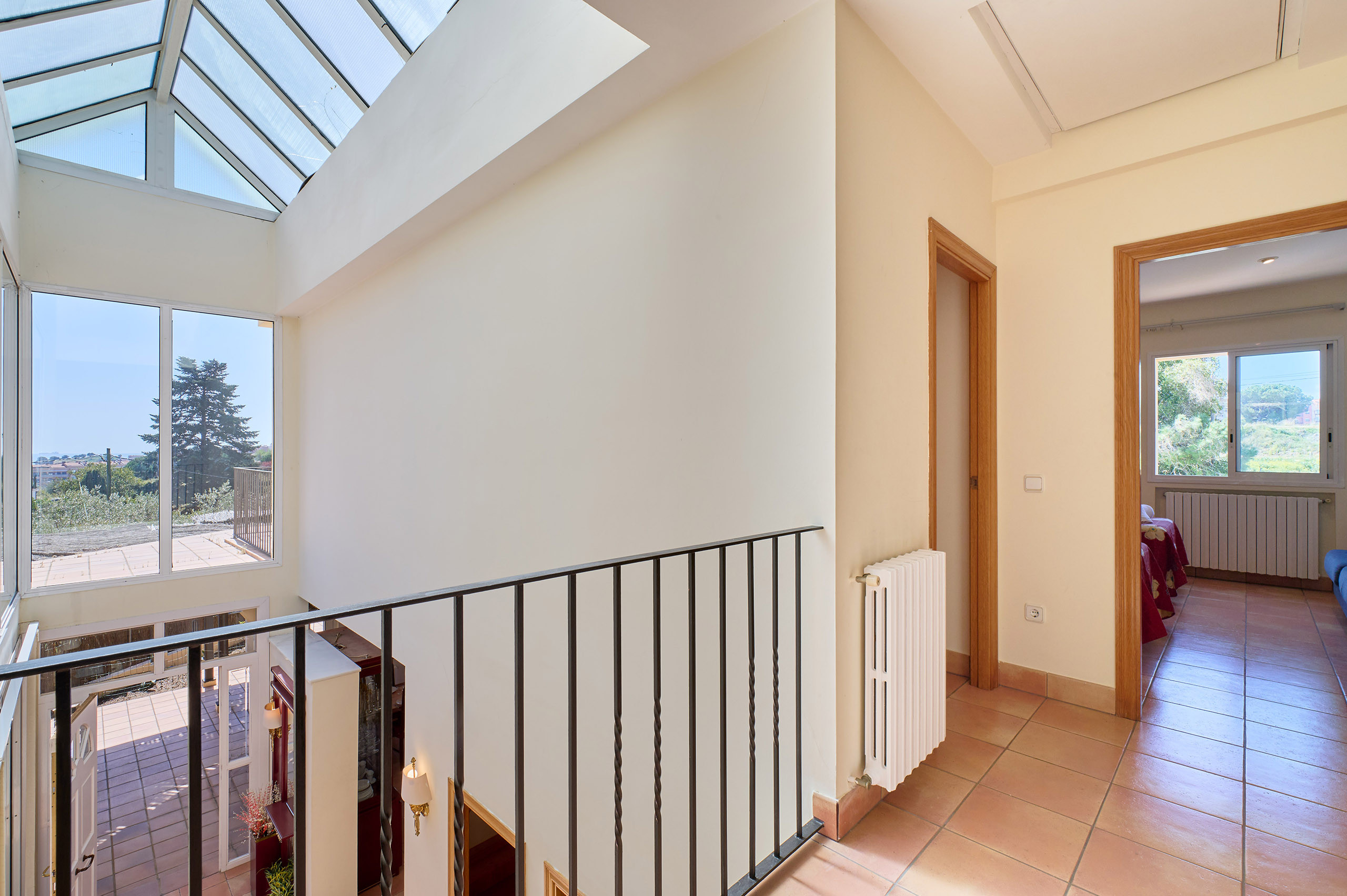 The house is distributed over 2 floors. On the upper floor, there are 3 double bedrooms: one of them with a double bed (suite with bathtub), and the other two with 2 single beds in each. Full bathroom with shower.