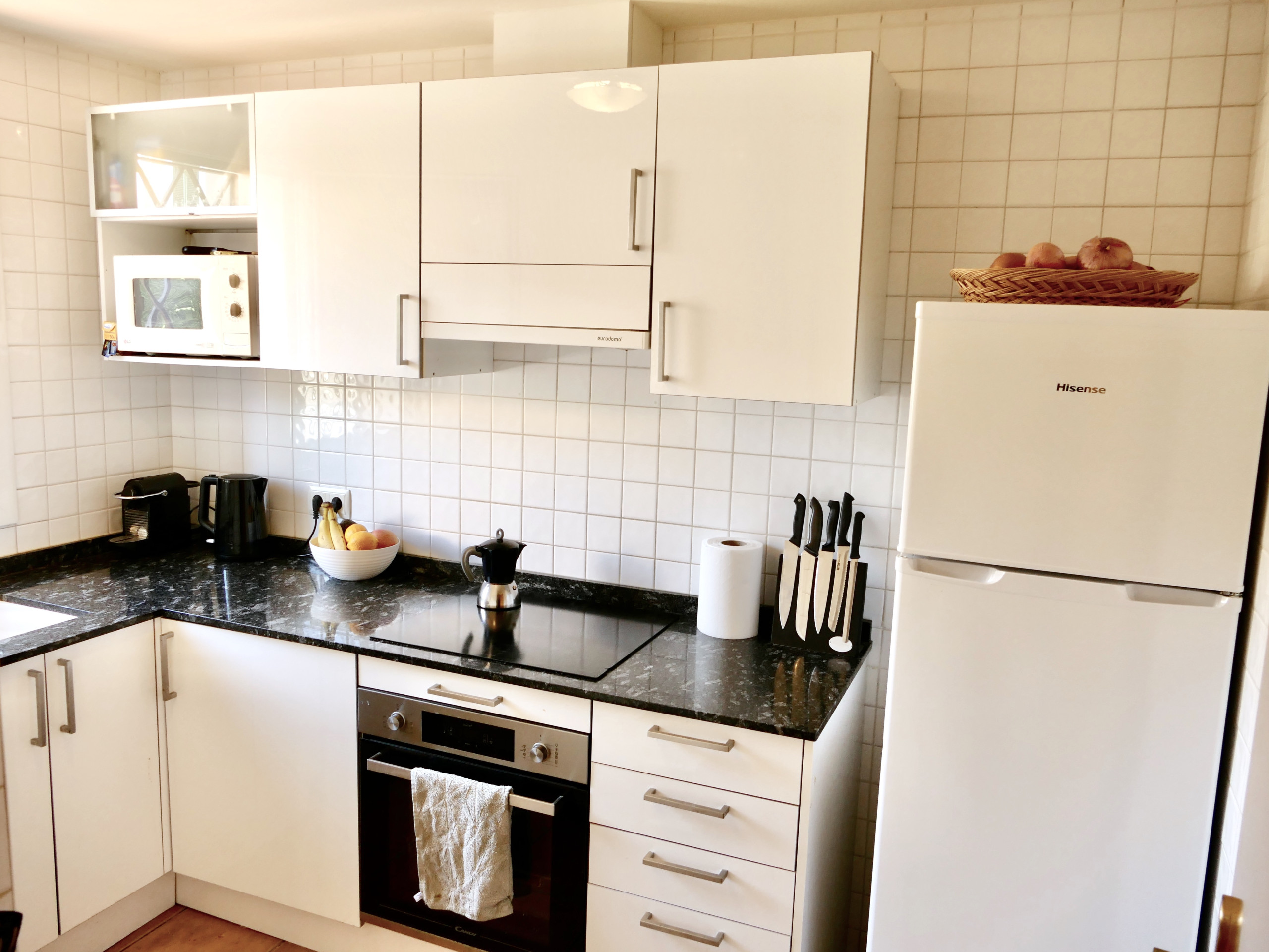 - Fully equipped kitchen (ceramic hob, oven, microwave, and dishwasher).