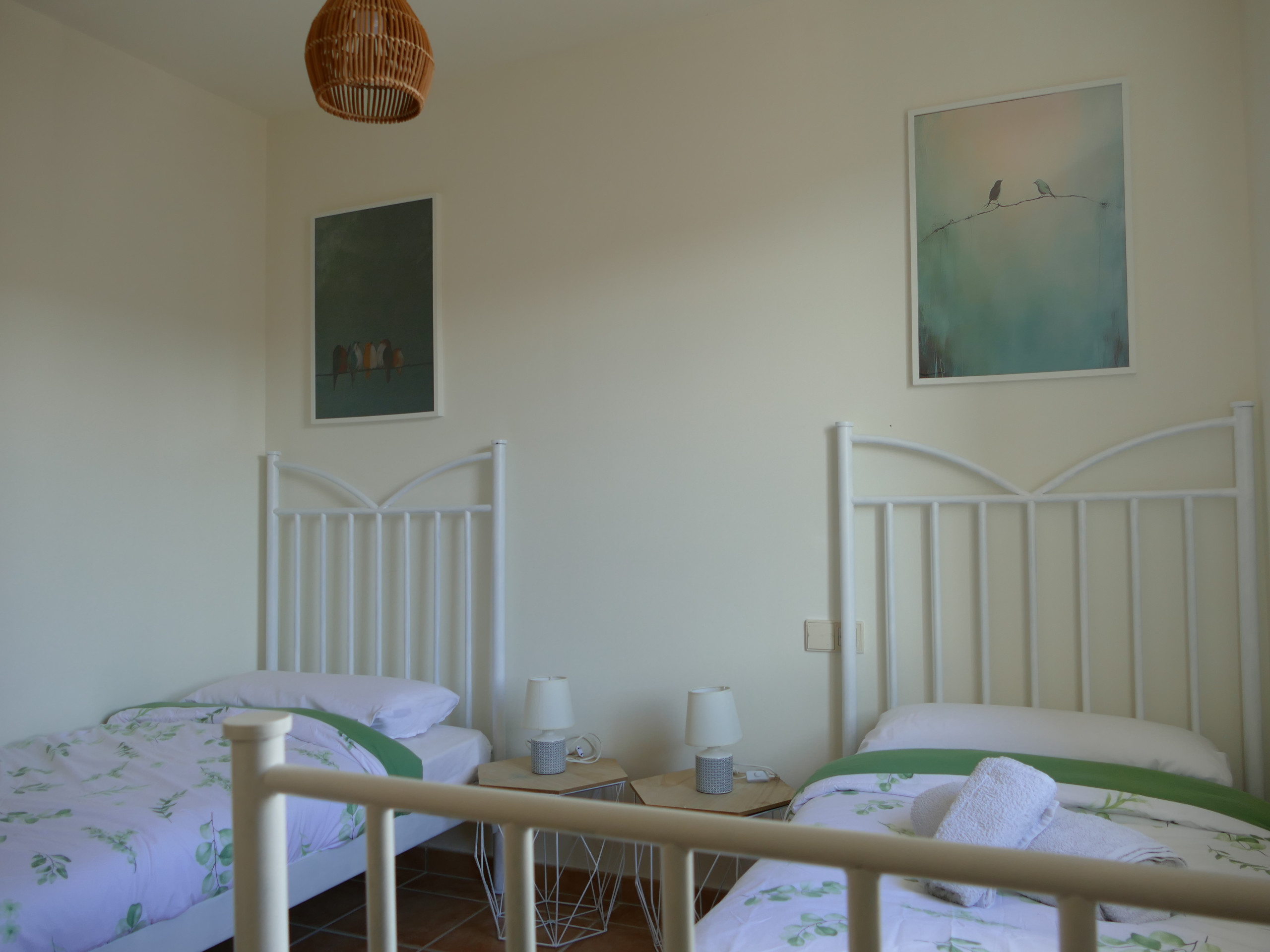 - 2 chambres avec lits jumeaux, chacune avec deux lits simples (90×190 cm).